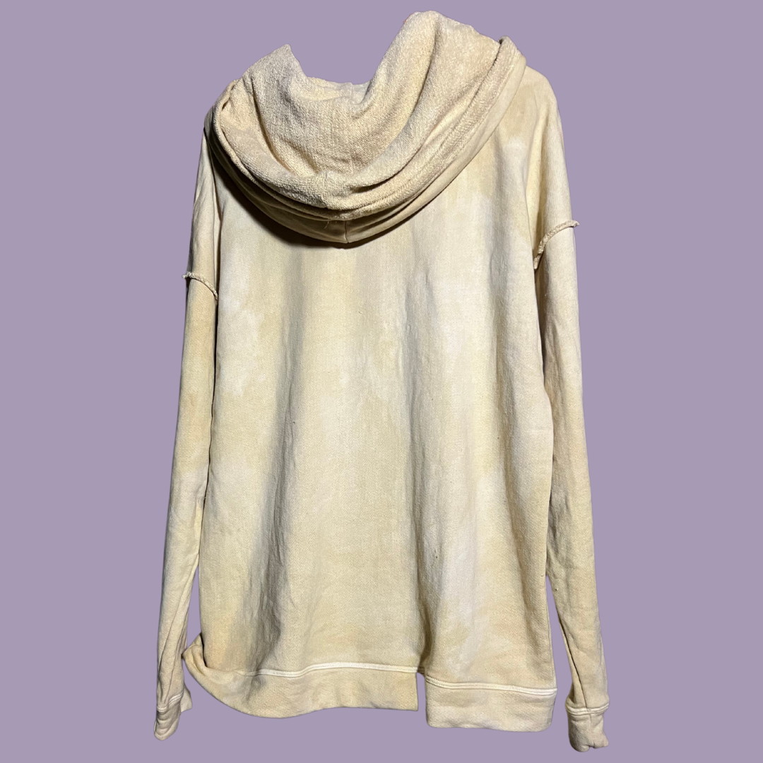 This hoodie was dyed by hand from discarded purple onion skins. It is made from organic cotton. It is designed to have a relaxed, oversized fit and includes dropped sleeves, reinforced and exposed seams, and a double-layer hood. See About page for more information regarding our pricing, sizing and supply chain.